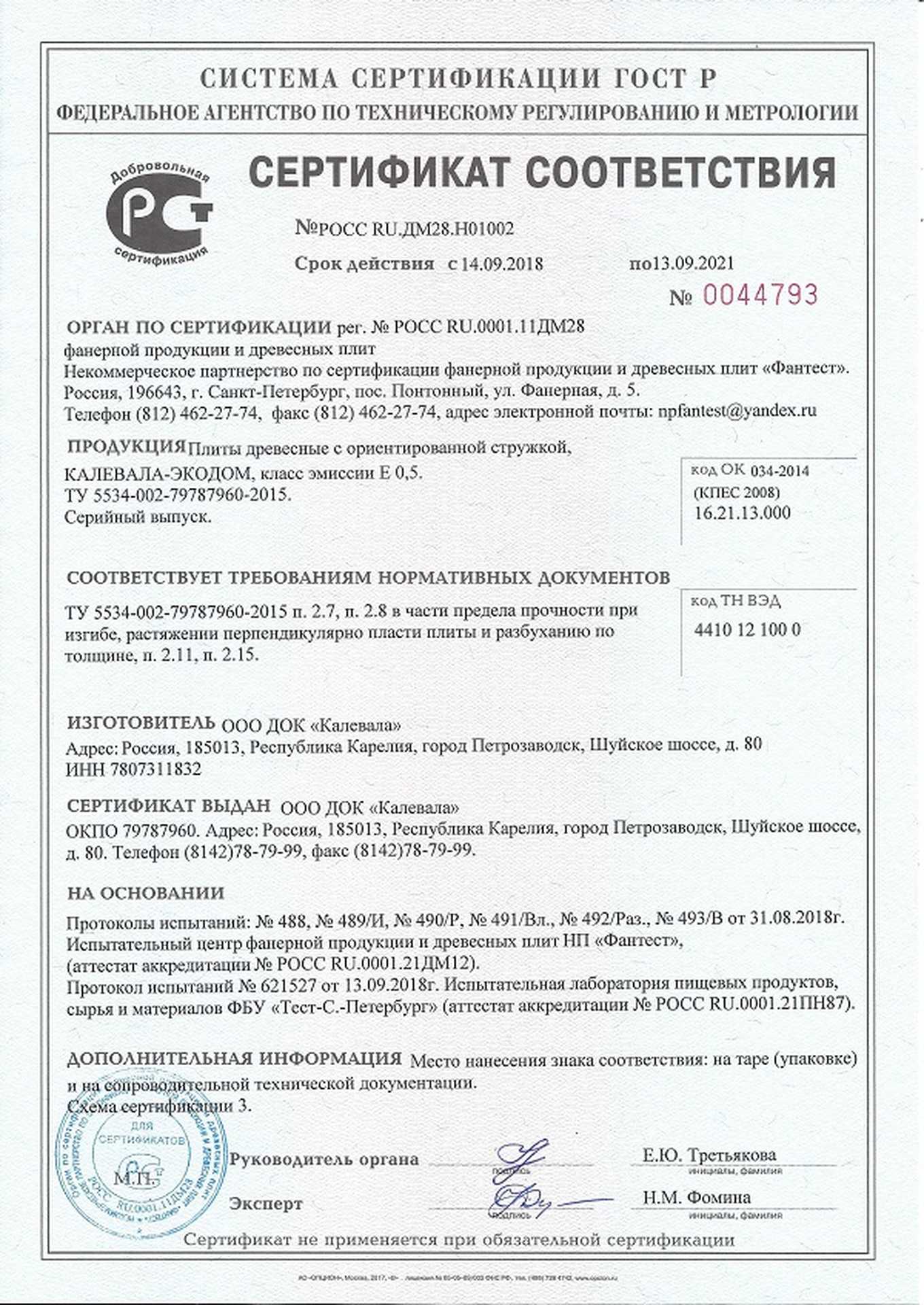 Подтвержденное сертификатами и действующими ГОСТ